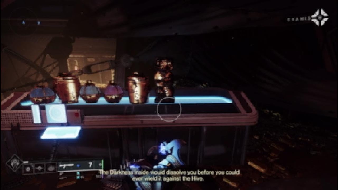 Eramis frequently had nightmares, ranging from her failures at Twilight Gap, to falling to the hands of a Guardian at the Prison of Elders, to losing her partner Athrys.2 9 Through her dreams, Eramis was called to Earth’s Moon. After fighting through swarms of Hive on Luna, Eramis discovered the dormant Pyramid ship beneath the surface. The Pyramid spoke to Eramis and showed her a vision of Europa, and the power that resided there.9