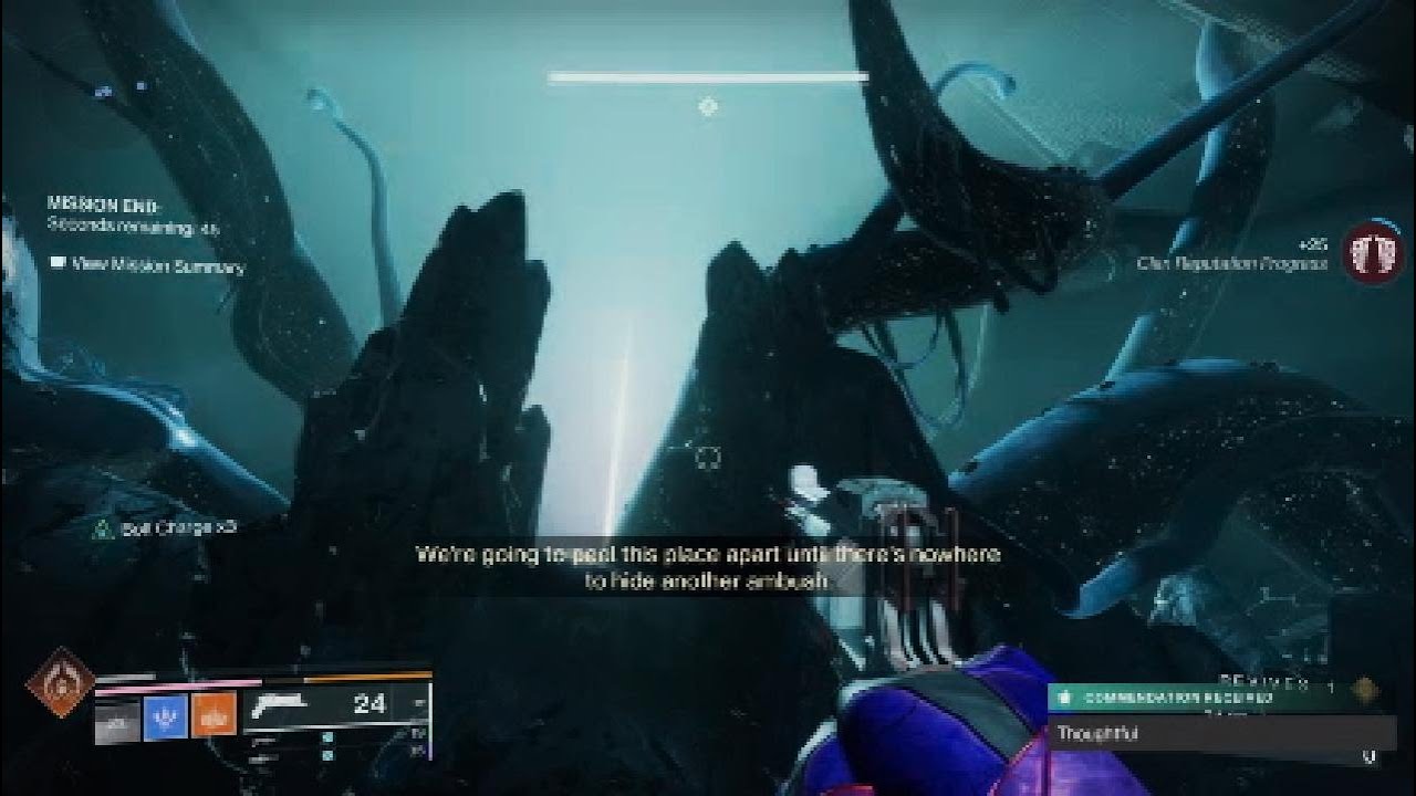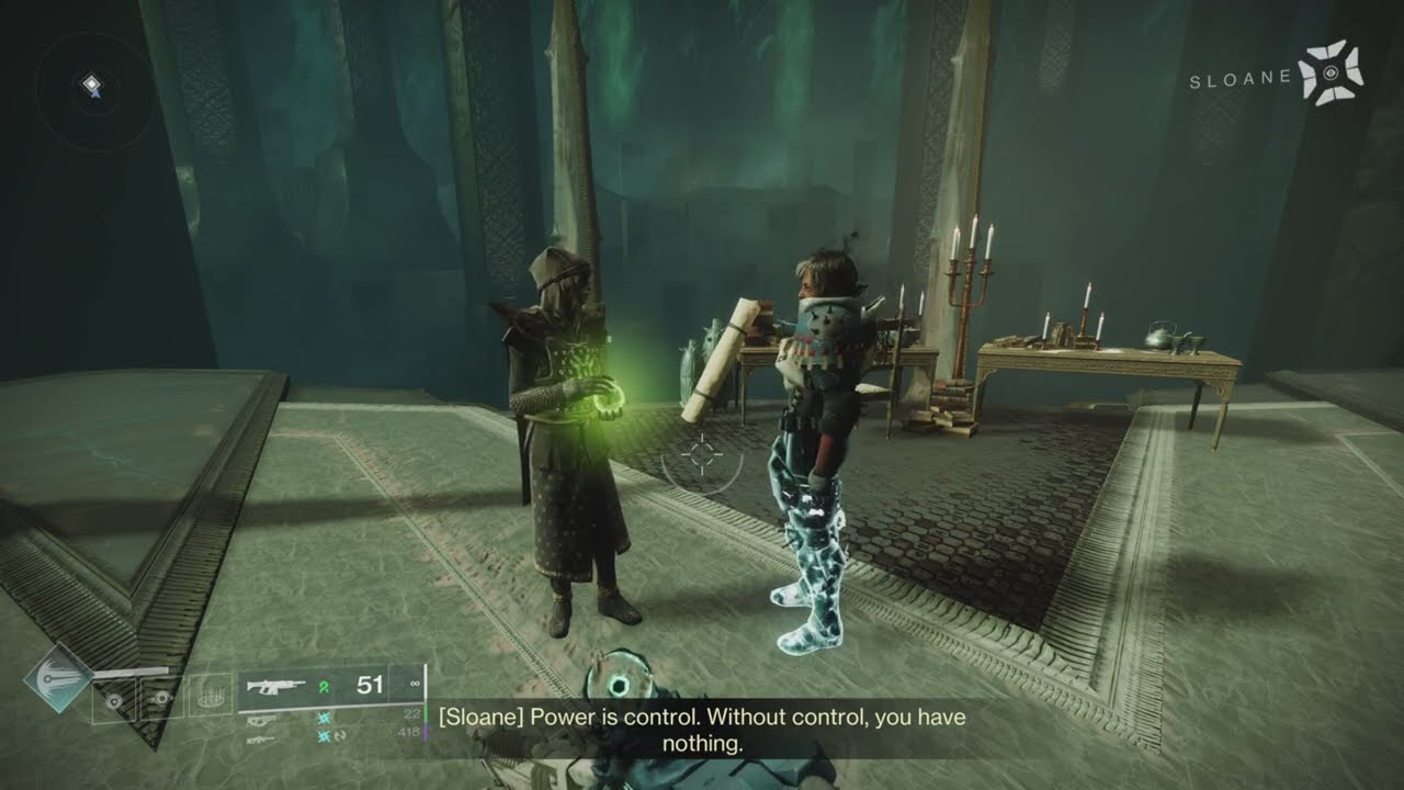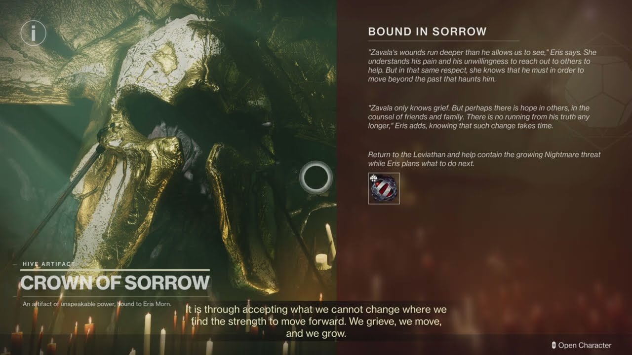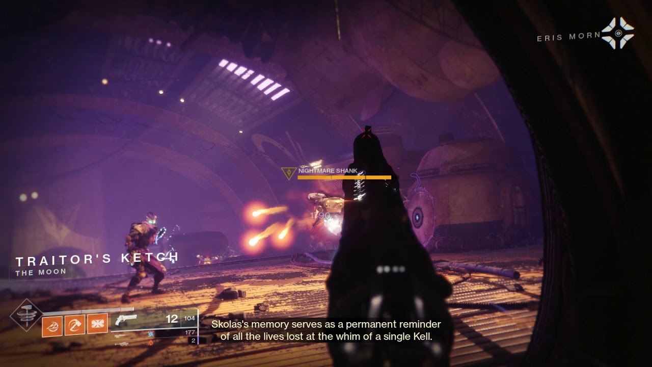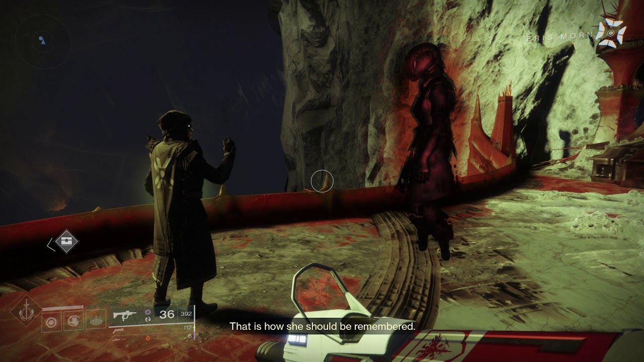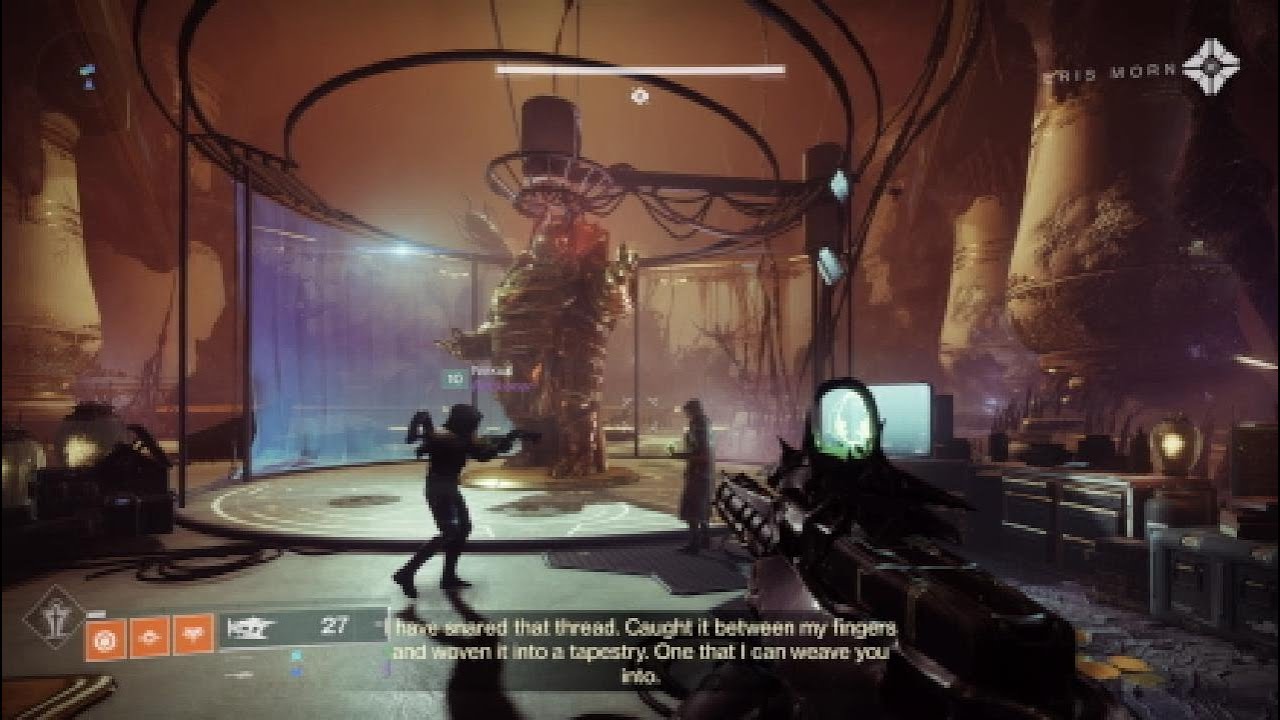 Following her return to the Tower, Morn helped the Guardian to prevent Crota’s Wakening.17 After Crota’s soul was banished, the Guardian traveled to Crota’s Throne and destroyed him, killing him permanently.18