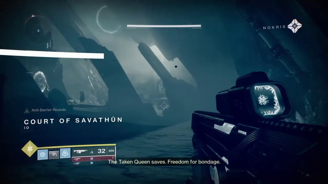 Upon escaping from the Hive fortress on the Moon, she returned to the Tower to warn of the return of Crota. She also operated as one of Ikora Rey’s Hidden, going on missions for her.16