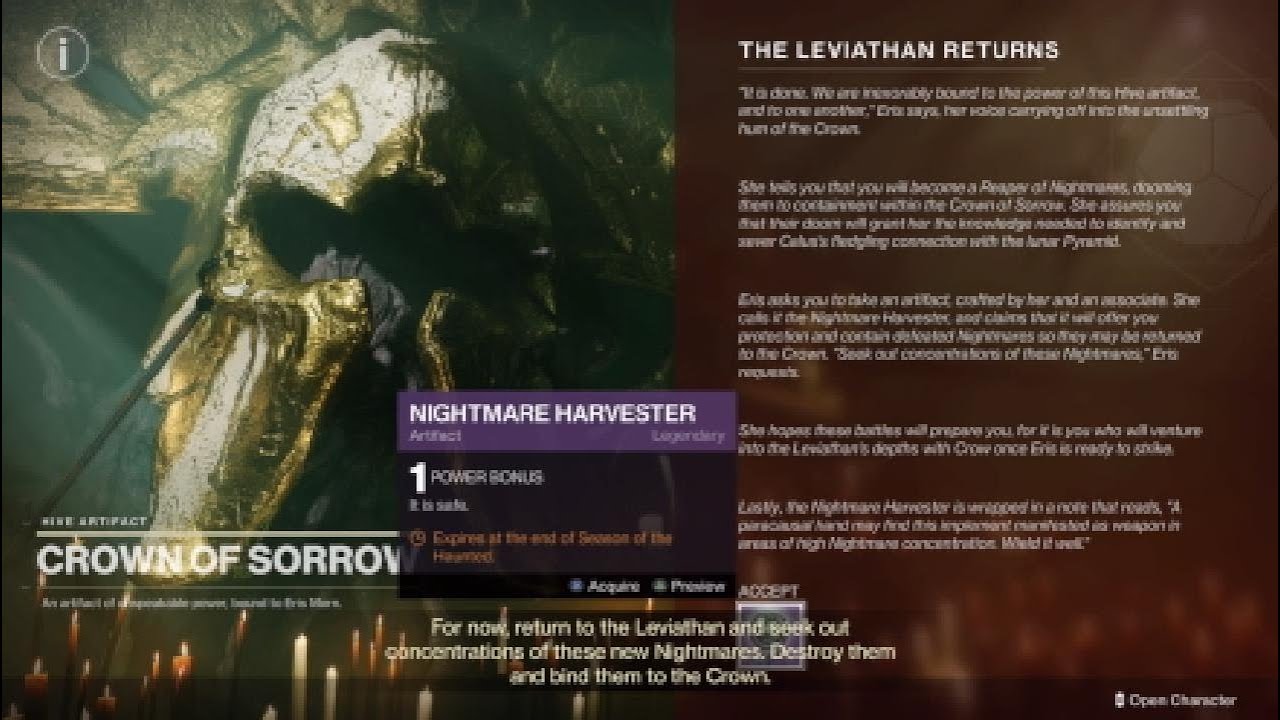 Morn worked with the Guardian to vanquish the Nightmares and eliminate Crota's daughter, Hashladûn, who had been leading the Hidden Swarm.29 Following Hashladûn’s defeat, Morn asked the Guardian to travel into the Hellmouth to find the Cryptoglyph, which the Hidden Swarm used to protect themselves from the Pyramid’s Nightmares.30 Once the Guardian had the Cryptoglyph, they ventured to the Pyramid, but were unsuccessful in harming it. However, they received an unknown artifact, which they gave to Morn.31