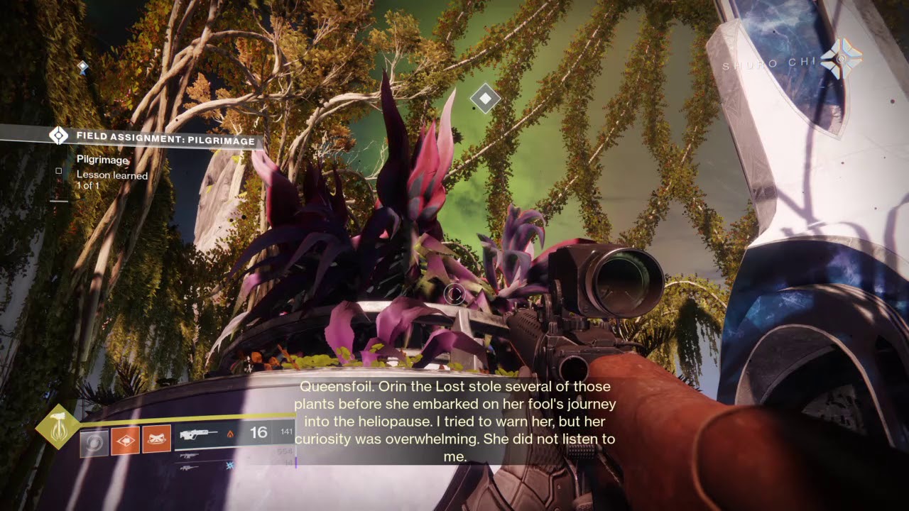 At some point, Orin sought out the nine Ghosts who were said to have ventured beyond the heliopause.1112 She ventured beyond the heliopause in her hunt.8 Orin came back from her journey as the Emissary and began setting up the Trials of the Nine.13